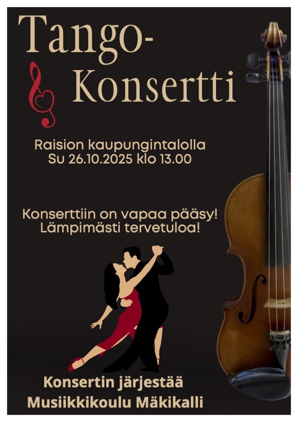 Tangokonsertti Raision kaupungintalolla Su 26.10.2025